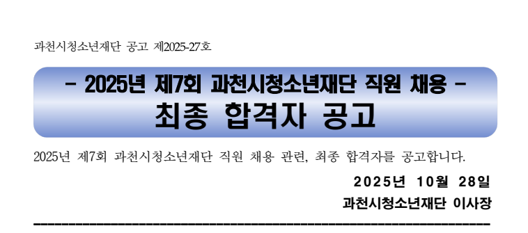 성명 : 과천시청소년재단 직책 : 행정관리자